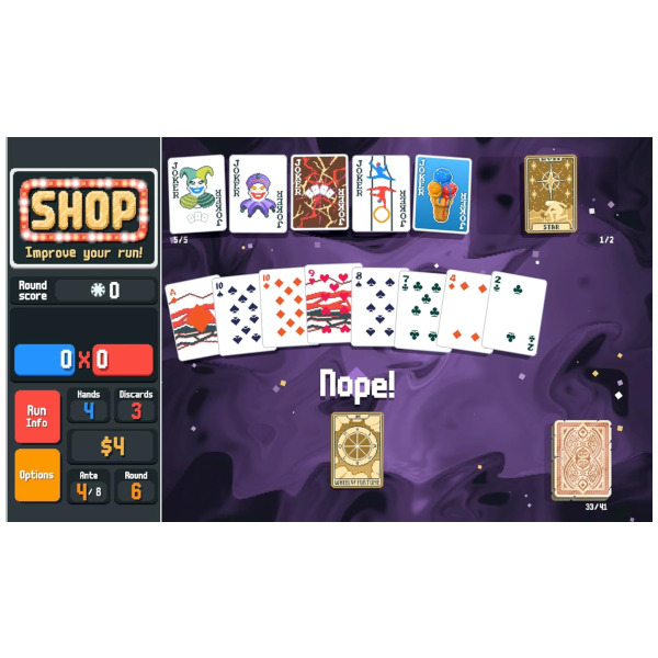 Use your arsenal wisely and strategically, deploying decks, jokers, tarots, planet and spectral cards, and vouchers to spark a combo chain and produce unexpected synergies.